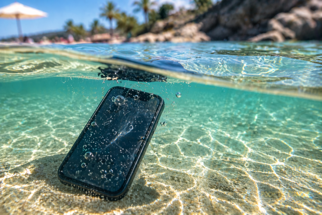 À la plage, au bord de la piscine, sous la pluie ou simplement à la maison après un verre renversé… nos smartphones sont exposés à de nombreux risques liés aux liquides. Et contrairement à une idée répandue, un téléphone qui a été mouillé n’est pas forcément “sauvé” une fois séché.